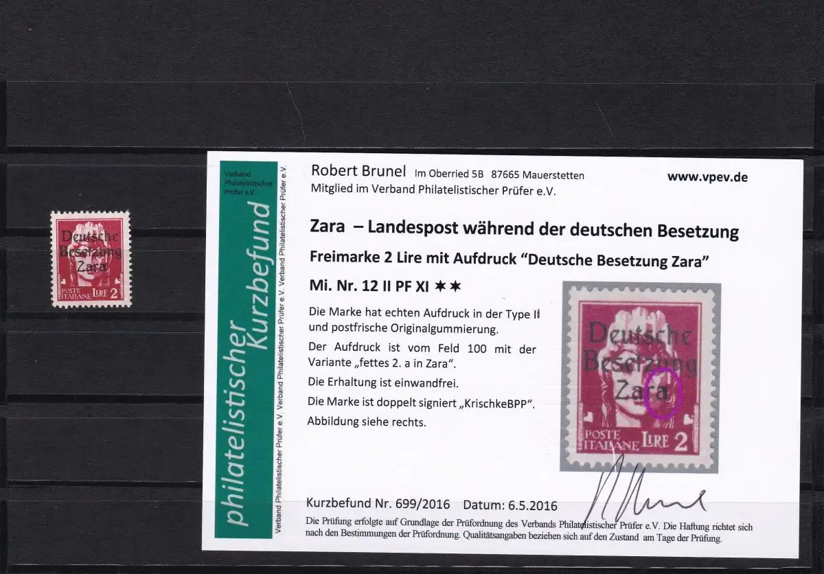 Zara: MiNr. 12II, PLF XI, postfrisch **