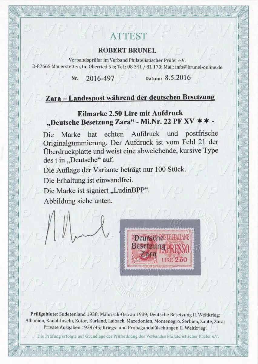 Zara: MiNr. 22 PF XV, postfrisch, **