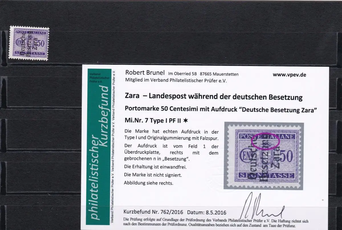 Zara - MiNr. 7 Type I PF II, postfrisch, **