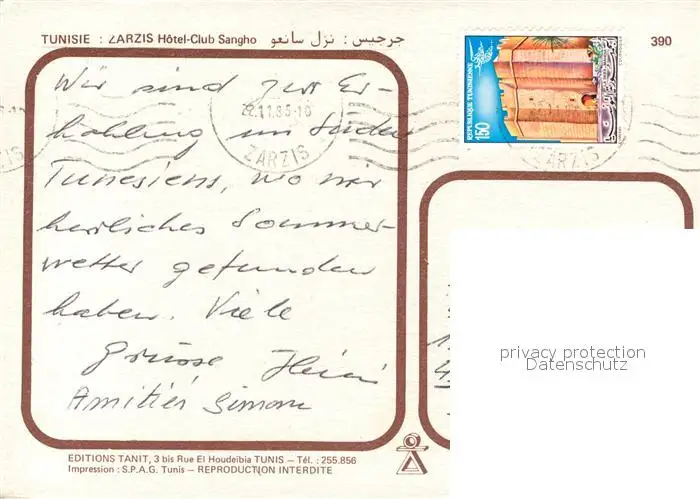 Zarzis Hotel Club Sangho Statue Swimming Pool Strand Zarzis postalisch gelaufen 1985 Erhaltung siehe scans [FriedD77] Frierer