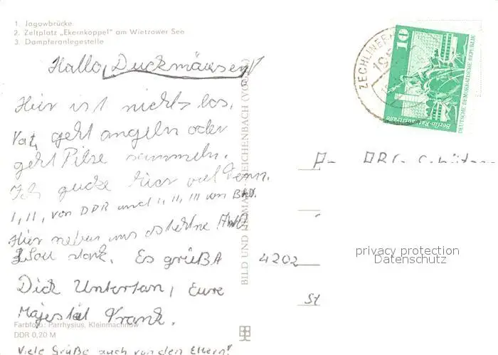 Zechlinerhuette Jagowbruecke Zeltplatz Ekernkoppel Wietzower See Dampferanlegestelle Zechlinerhuette postalisch gelaufen 1978 Erhaltung siehe scans [FriedD77] Frierer