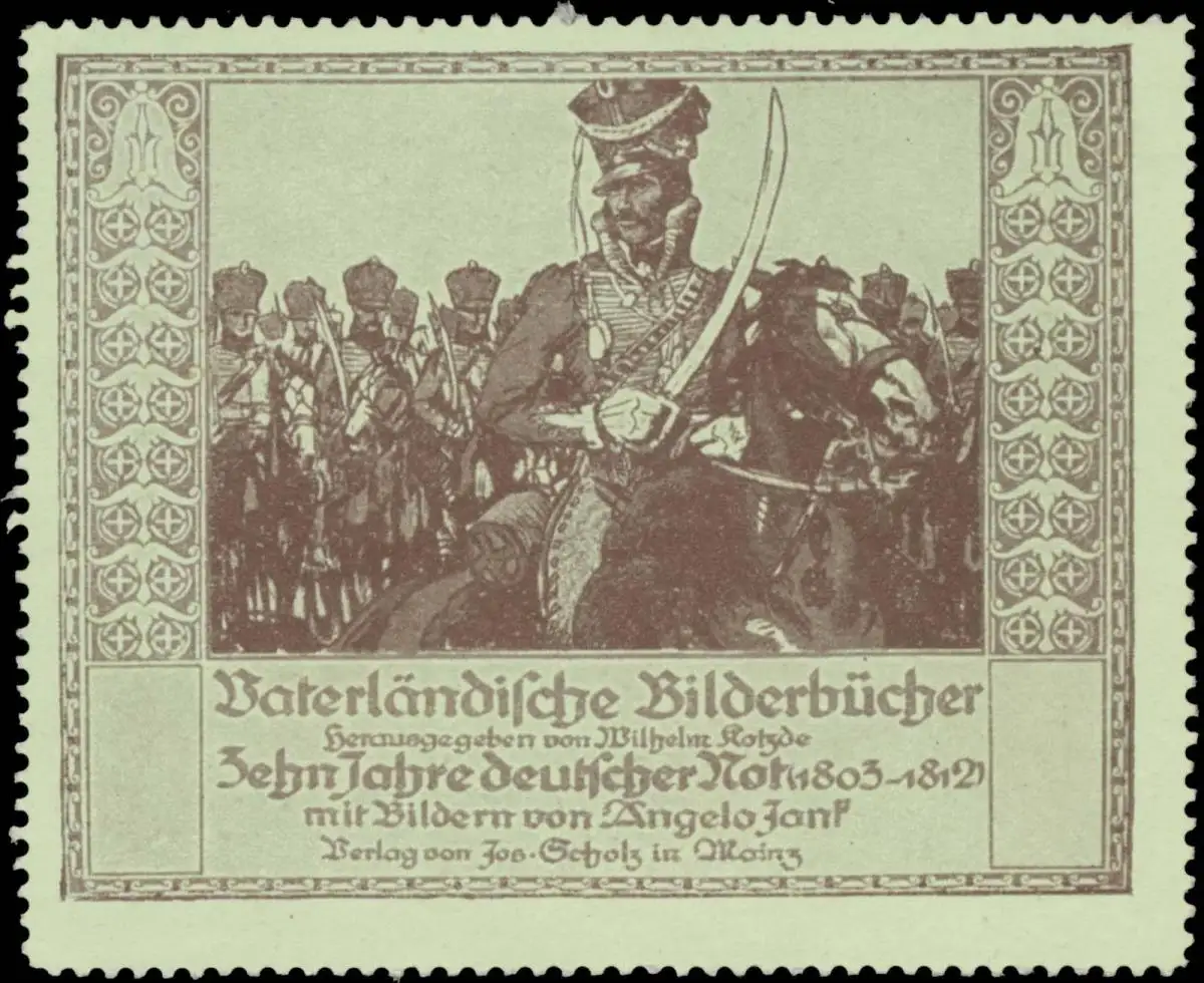 Herausgeber: Wilhelm Kotzde, Reihe: Vaterländische Bilderbücher, Befreiungskriege, Größe/Zustand: 6x7 , guter Zustand, Original alte Reklamemarke die seinerzeit für die Werbung benutzt wurde
