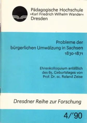 Probleme der bürgerlichen Umwälzung in Sachsen 1830 - 1871 - Dresdner Reihe zur Forschung 4/90 Ehrenkolloquium anläßlich des 65. Geburtstages von Prof. Dr. so, Roland Zeise