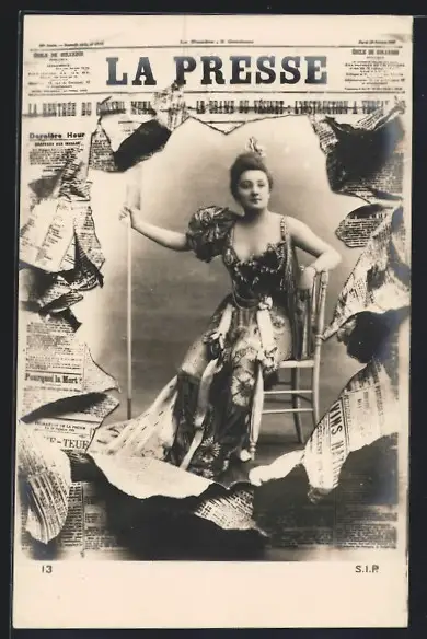 Zeitungs-AK Frau mit Kleid in einem Zeitungsausschnitt, La Presse