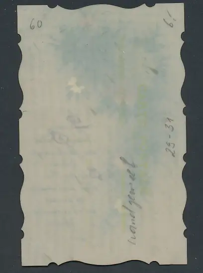 Personenbezogene Daten auf der Rückseite der Karte wurden durch blauen Textmarker unkenntlich gemacht. Die blauen Stellen sind auf die Vorderseite durchgeweicht und wirken sich negativ auf das Postkartenfoto aus