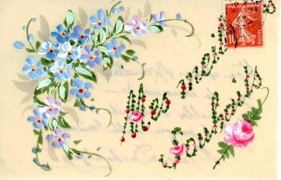 Zelluloid Ak Blumen, Vergissmeinnicht, Kitsch