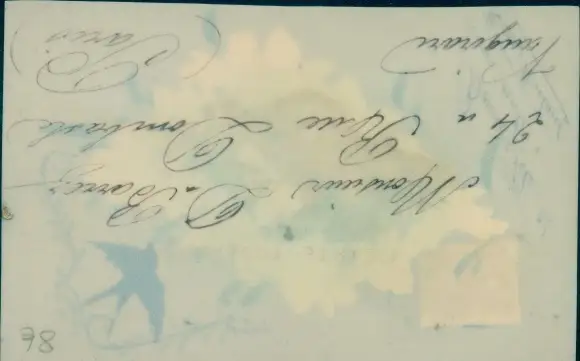 Zelluloid Ak Blumenstrauß, Stiefmütterchen, Schwalbe