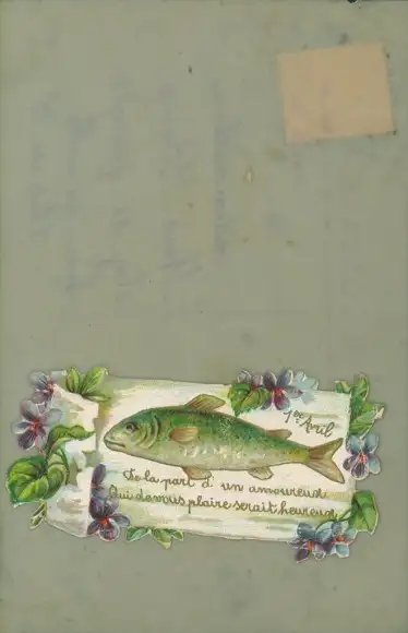 Zelluloid Ak Glückwunsch 1. April, Fisch, Veilchen