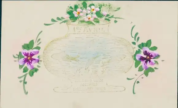 Zelluloid Ak Glückwunsch 1. April, Fische, Blumen