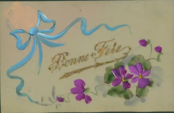 Zelluloid Ak Glückwunsch, Bonne Fete, Blumen, Blaue Schleife