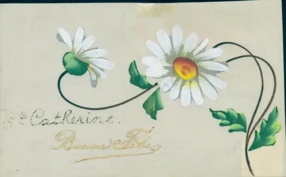 Zelluloid Ak Glückwunsch, Bonne Fete, Margeriten