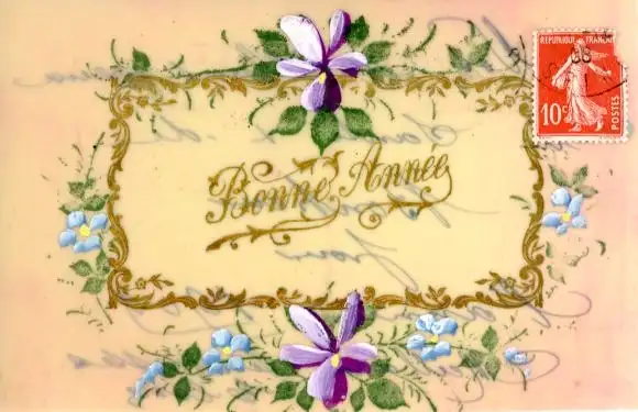 Zelluloid Ak Glückwunsch Neujahr, Blumen