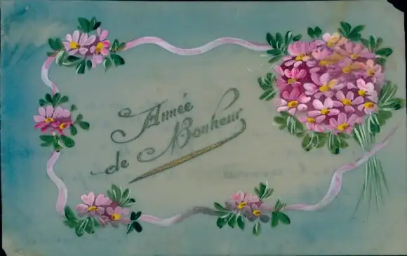 Zelluloid Ak Glückwunsch Neujahr, Blumen