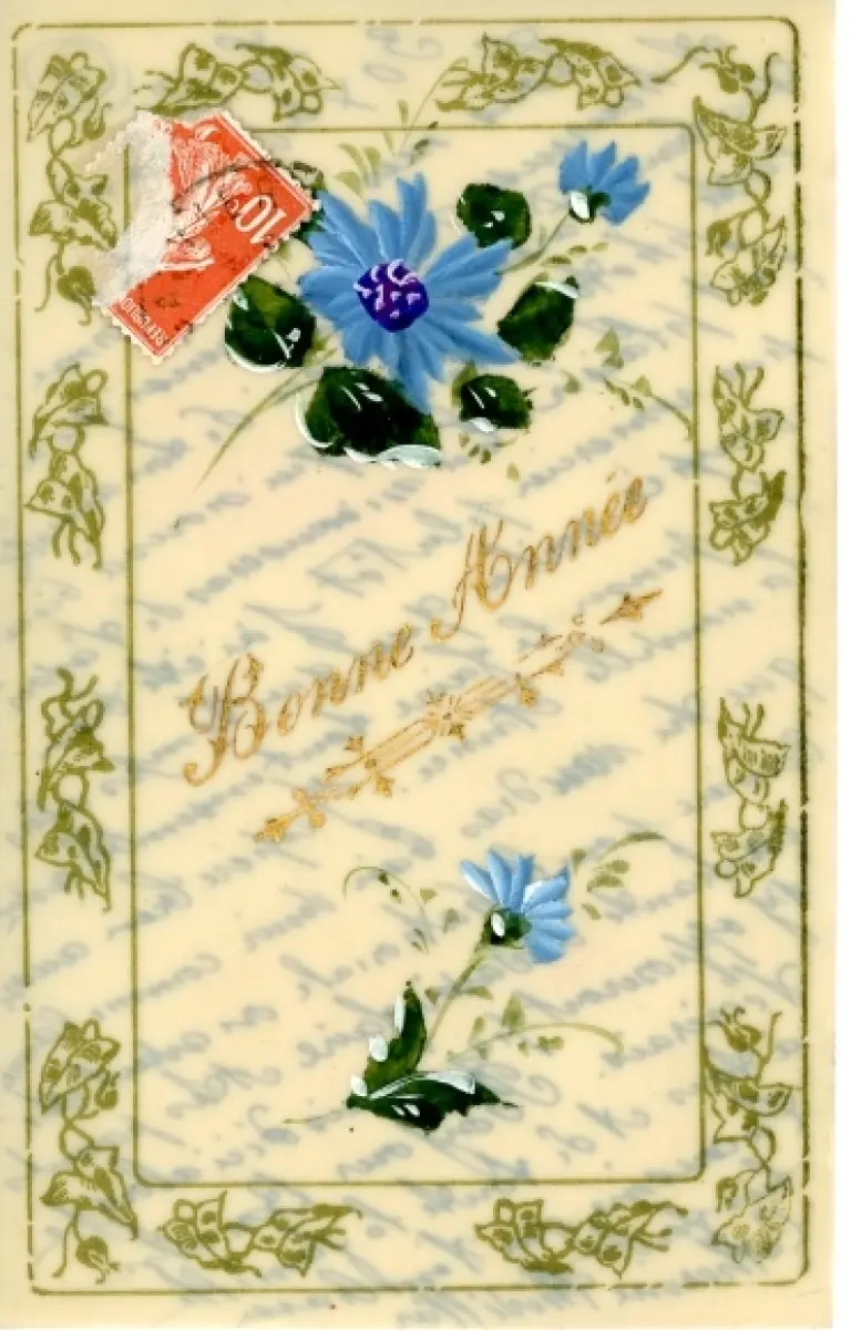 Zelluloid Ak Glückwunsch Neujahr, Blumen