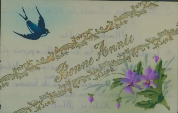 Zelluloid Ak Glückwunsch Neujahr, Schwalbe, Blumen