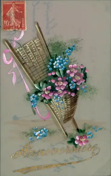 Ansichtskarte, Postkarte, Korbflechter, Korb flechten, Korbhandel, Korbhändler, Korbmacher