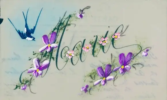 Zelluloid Ak Kitsch, Blumen, Schwalbe