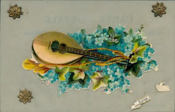 Zelluloid Ak Kitsch, Laute, Vergissmeinnicht