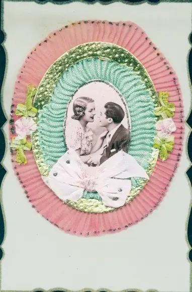 Zelluloid Ak Liebespaar, Stoffschleifen