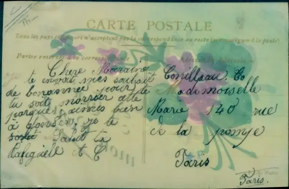 Zelluloid Ak Lila Blüten