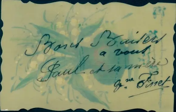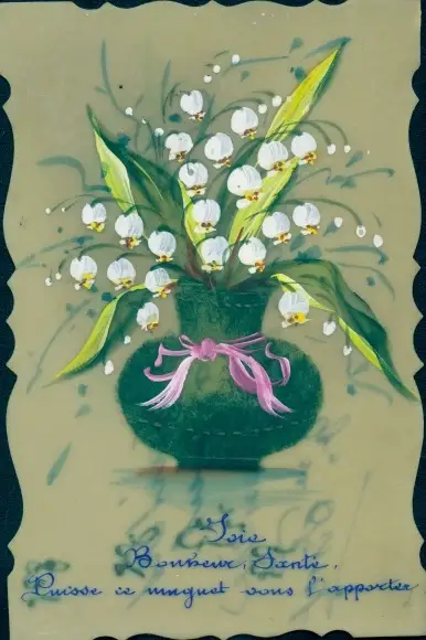 Zelluloid Ak Maiglöckchen in der Blumenvase