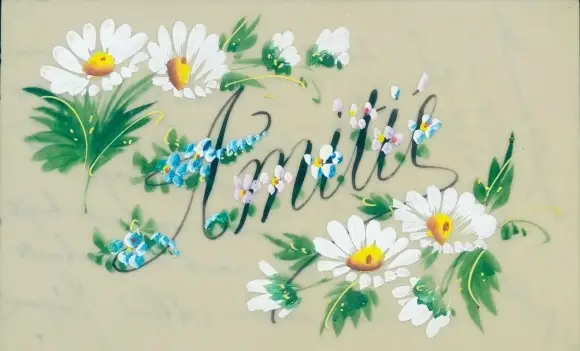 Zelluloid Ak Margeriten, Vergissmeinnicht, Blumen, Kitsch