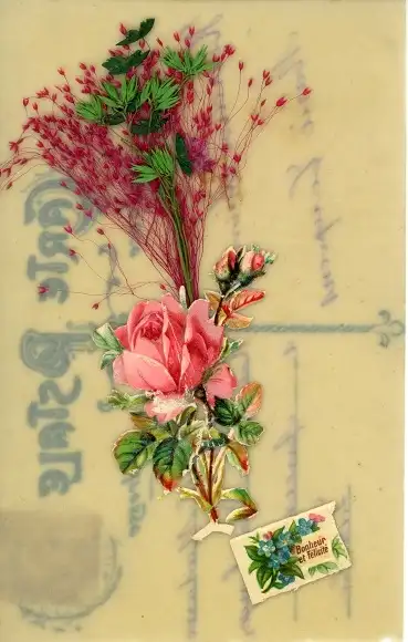 Zelluloid Ak Rosen, Echte Pflanze, Kitsch