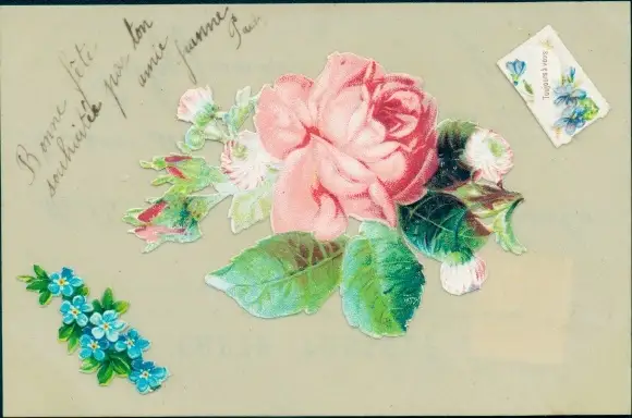 Zelluloid Ak Rosen, Vergissmeinnicht, Brief