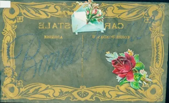 Zelluloid Ak Rosen im Briefumschlag