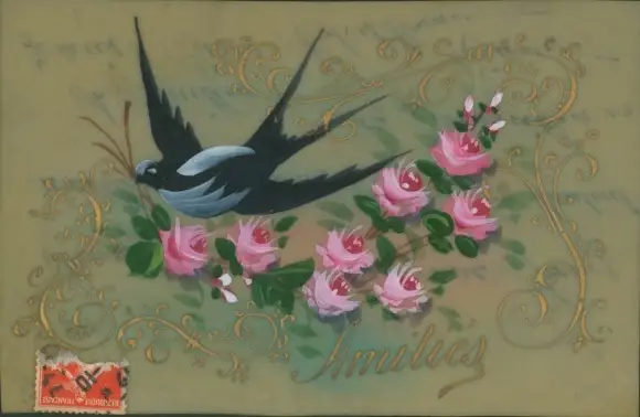 Zelluloid Ak Schwalbe, Rosen, Amities