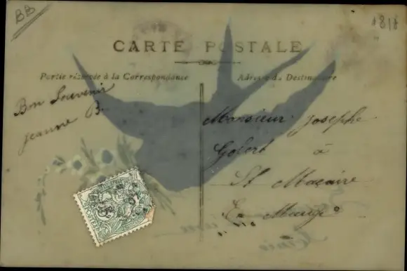 Zelluloid Ak Schwalbe, Vergissmeinnicht, Kitsch
