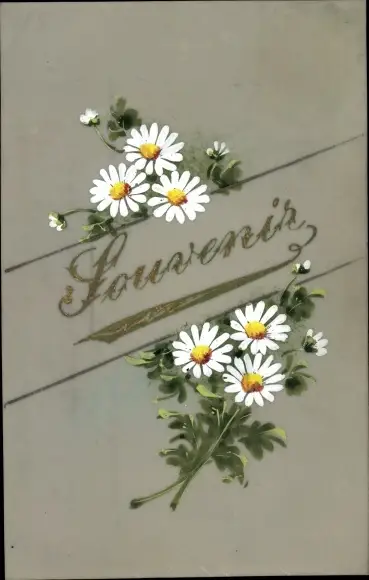 Zelluloid Ak Souvenir, Margeriten, Blumen