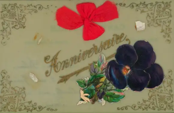 Zelluloid Ak Stoffschleife, Stiefmütterchen, Kitsch