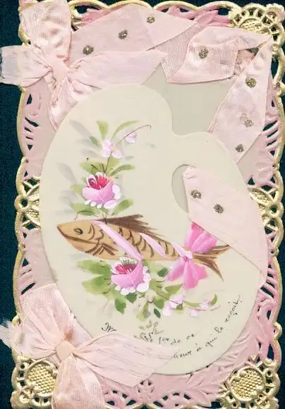 Zelluloid Ak Stoffschleifen, Fisch, Blumen, Kitsch