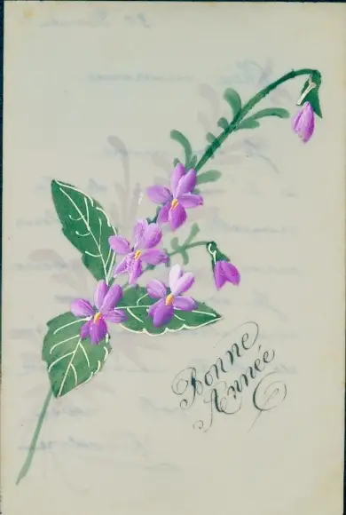 Zelluloid Handgemalt Ak Glückwunsch Neujahr, Blühende Blumen