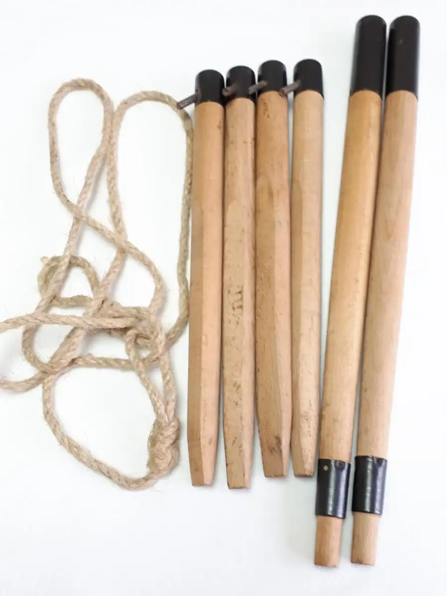 * 7 -teilig, bestehend aus 2 Zeltstangen (ca. 35 cm lang), 4 Heringe (ca. 26 cm lang) und 1 Seil