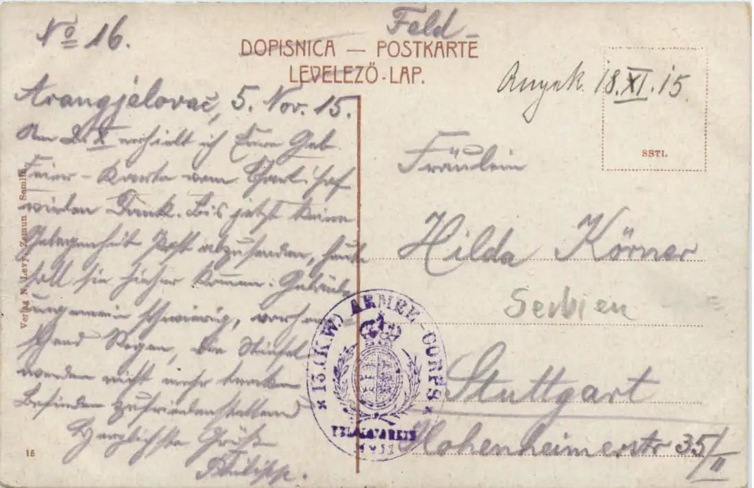 Zemun - Semlin Zimony - Feldpost 13. KW Armee Korps -460450