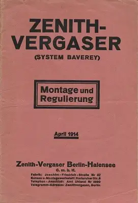 24 Seiten 22 x 14 cm Montage und Regulierung Zenith Vergaser GmbH Berlin Halensee Guter Zustand