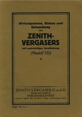 Zenith Vergaser Modell TD 1928