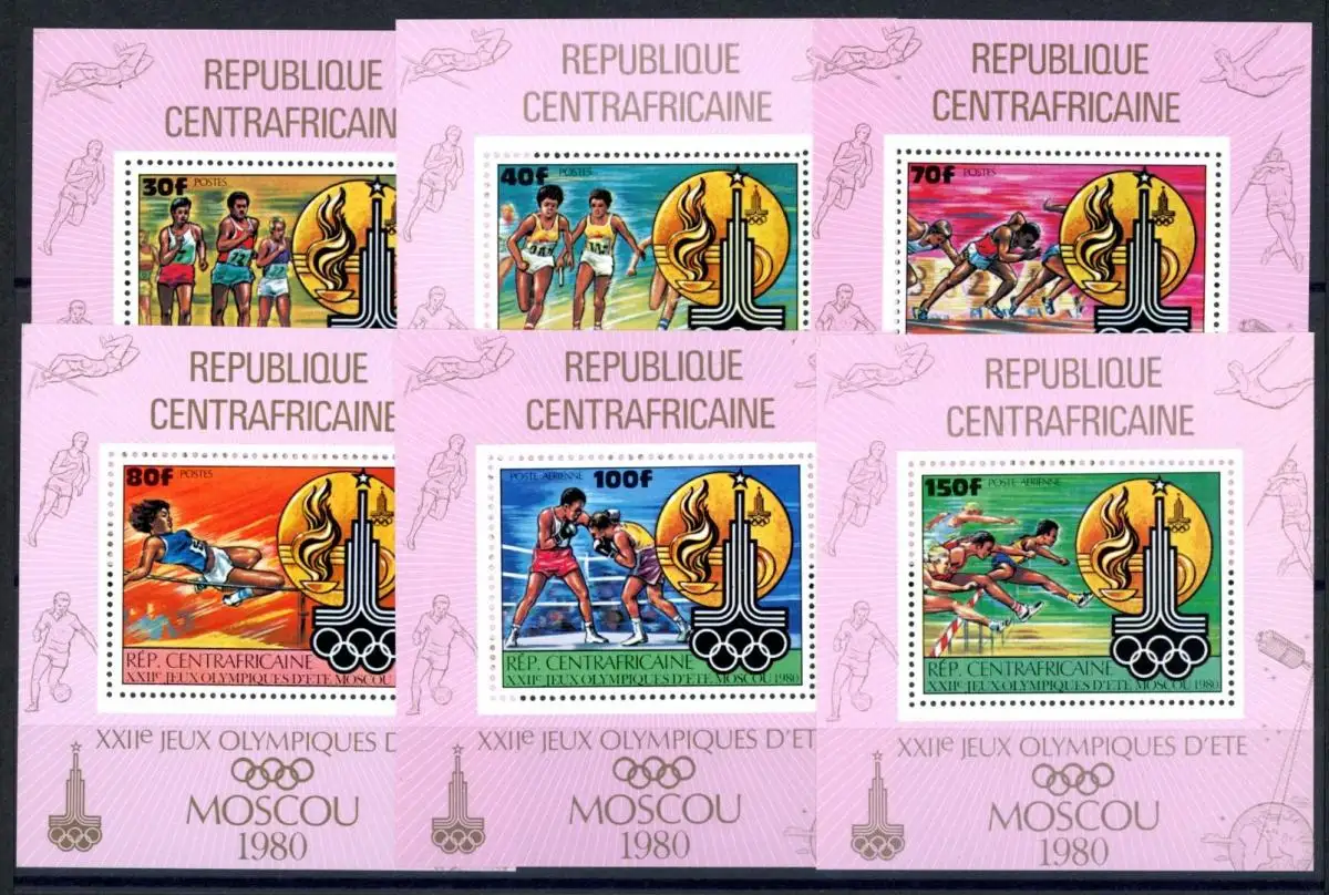 Zentralafr. Rep. Einzelblocks 679-684 postfrisch Olympia 1980 Moskau #1H575