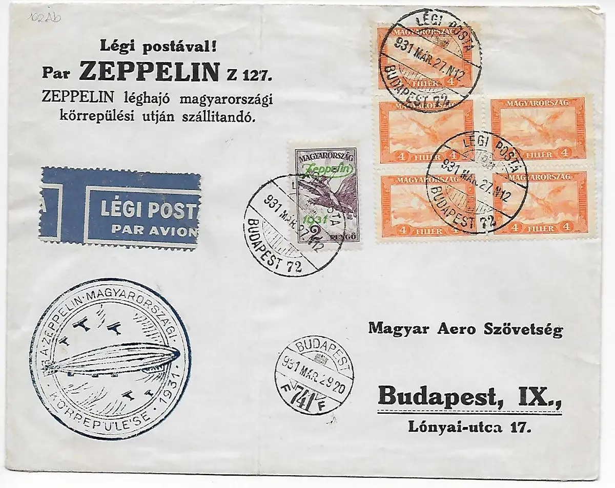 Zeppelin Budapest 1931, Luftpost