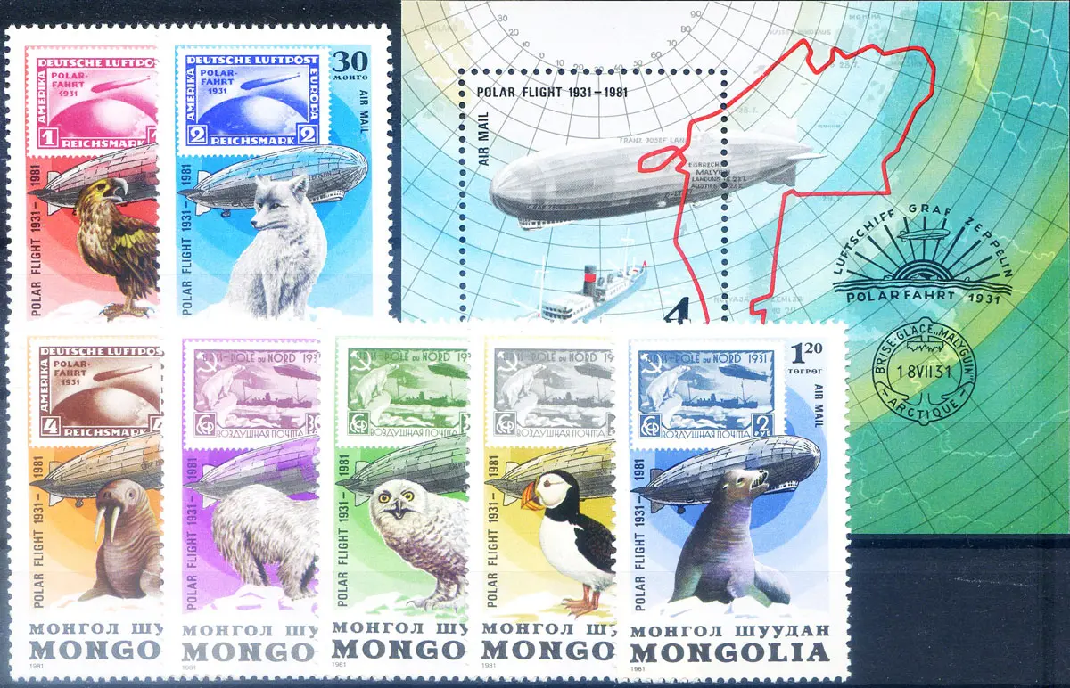 Zeppelin Luftschiffe. Serie + Zettel. Michel 2020: 1413/1419 + BL 76 (**) - Euro 16,50.