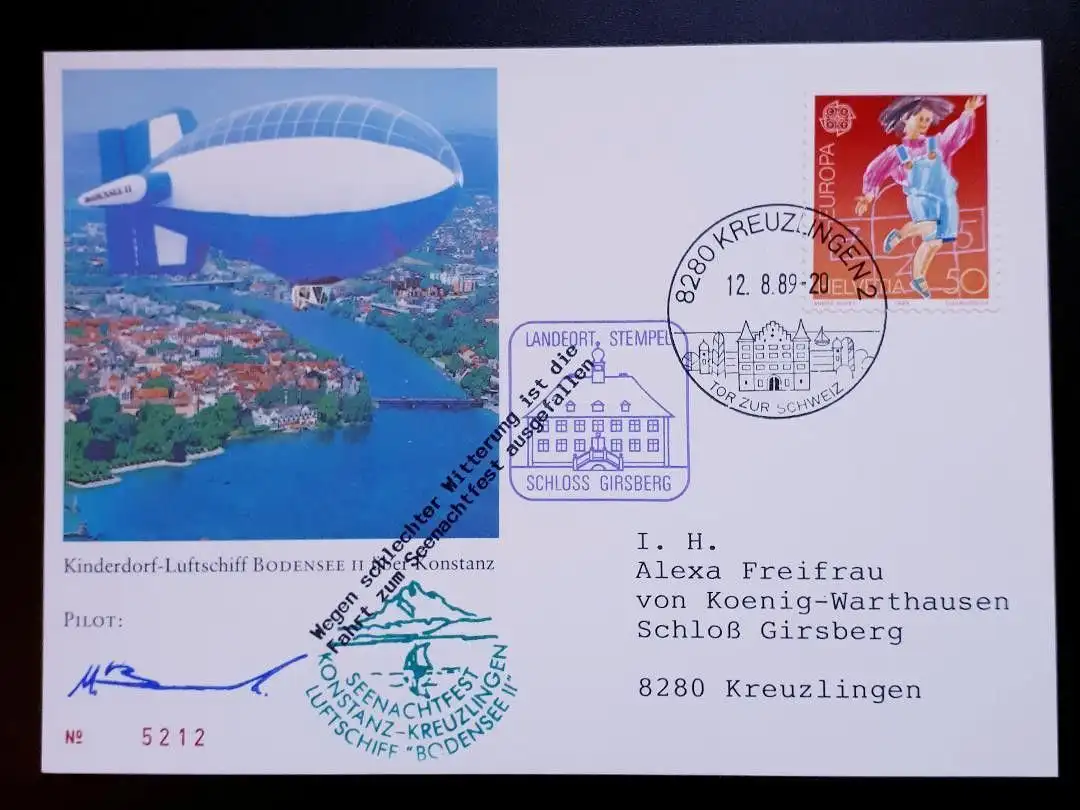 Zeppelinpost Schweiz Luftschiff Bodensee II Seenachtfest Konstanz Kreuzlingen