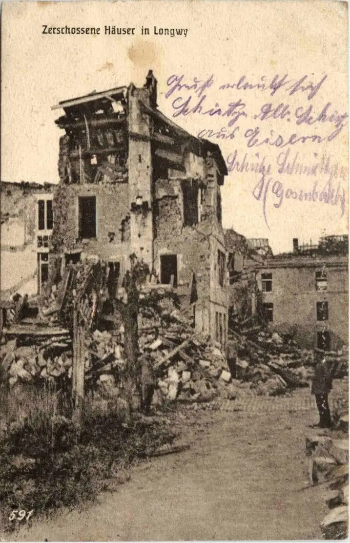 Zerschossene Häuser in Longwy - Feldpost -238648