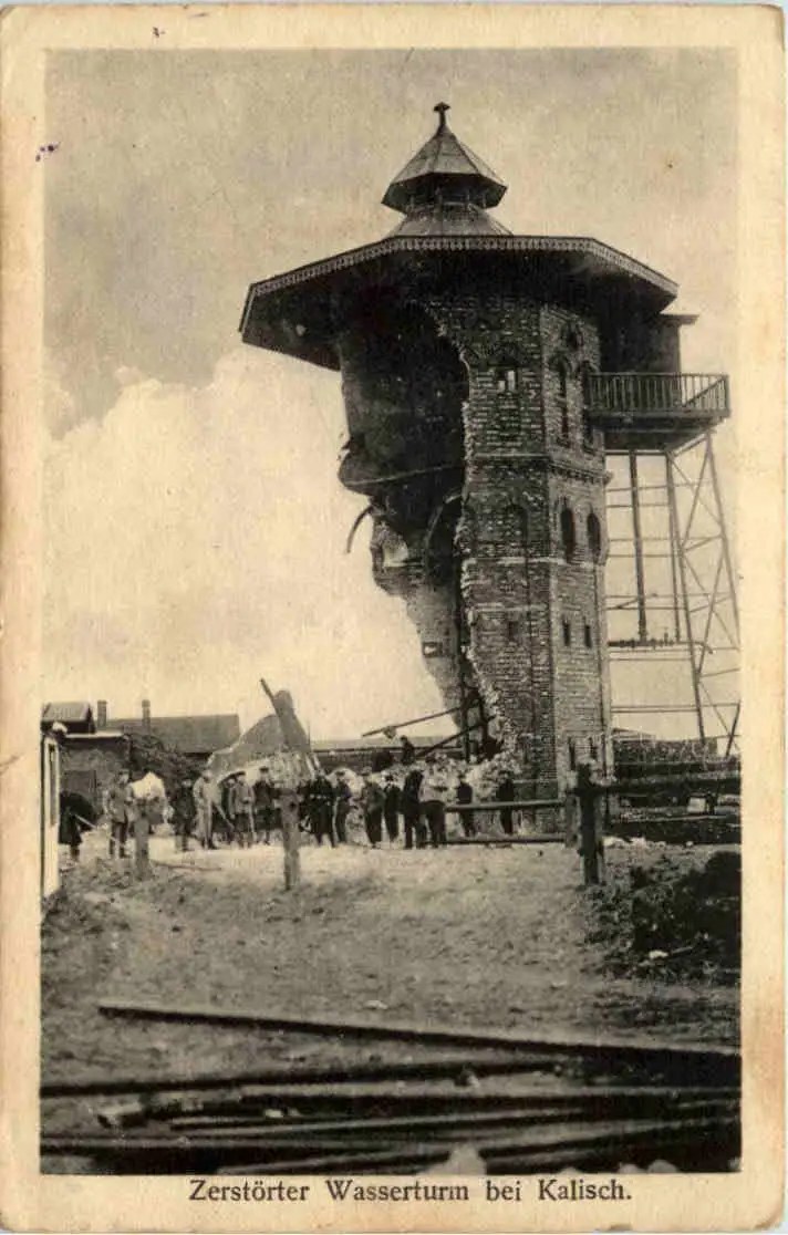 Zerstörter Wasserturm bei Kalisch - Feldpost Bay. Fussart. Mun -648788