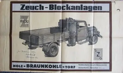 1 Seite 60 x 35 cm 3x gefaltet Holz Braunkohle Torf Süddeutsche Zeuch-Generatoren GmbH, Deisendorf-München Leichte Gebrauchsspuren