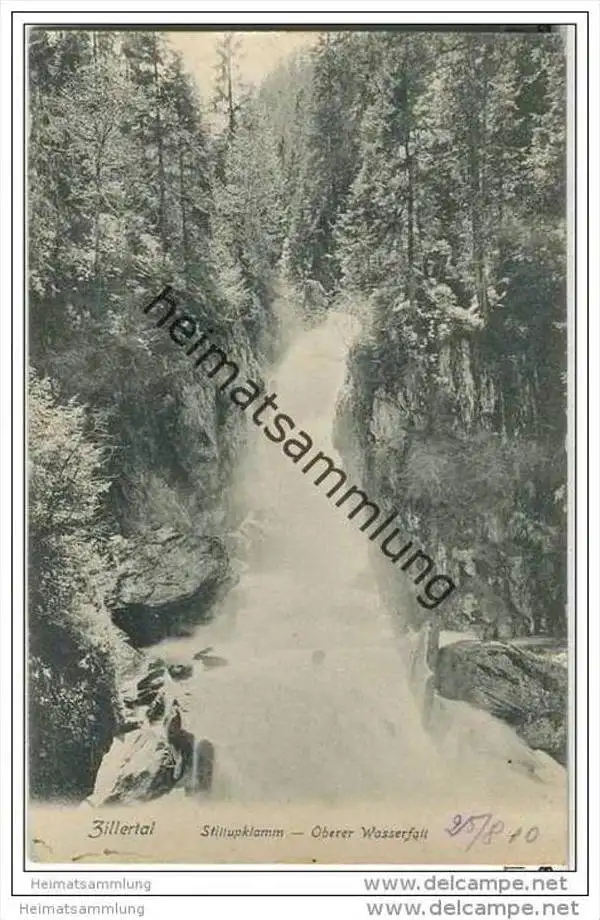 Zillertal - Stillupklamm - Oberer Wasserfall - Verlag Joh. Maidler Mayrhofen - Marke entfernt (G26107) gel. 1910