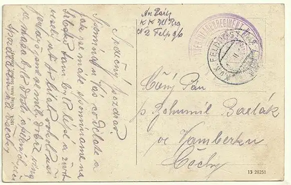 Bemerkungen: Gelaufen ca. 1916. Gestemp. Ulanenregiment. K. u. k. Feldpost.
