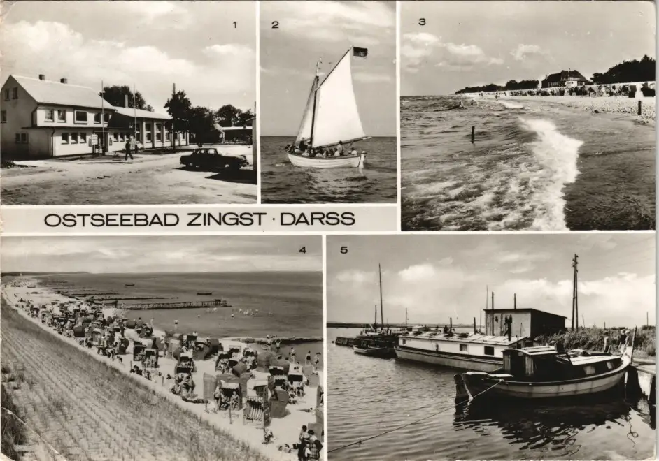 Zingst DDR Mehrbild-AK mit Erholungsheim Stranddistel, Segelboot uvm. 1977