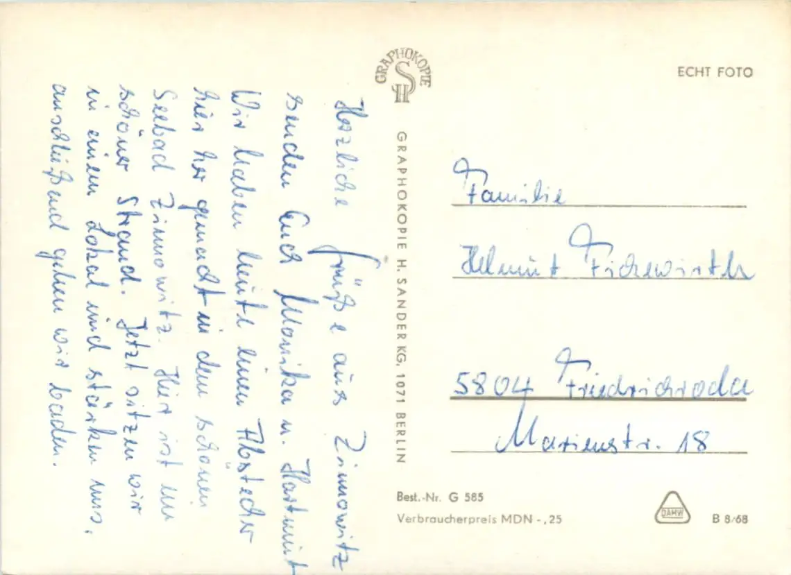 Der Zustand der Ansichtskarte war wie beschrieben und der Preis akzeptabel. Der Versand erfolgte leider erst nach knapp einer Woche nach Aufforderung und Androhung von Konsequenzen. Deshalb werde ich hier nicht mehr kaufen